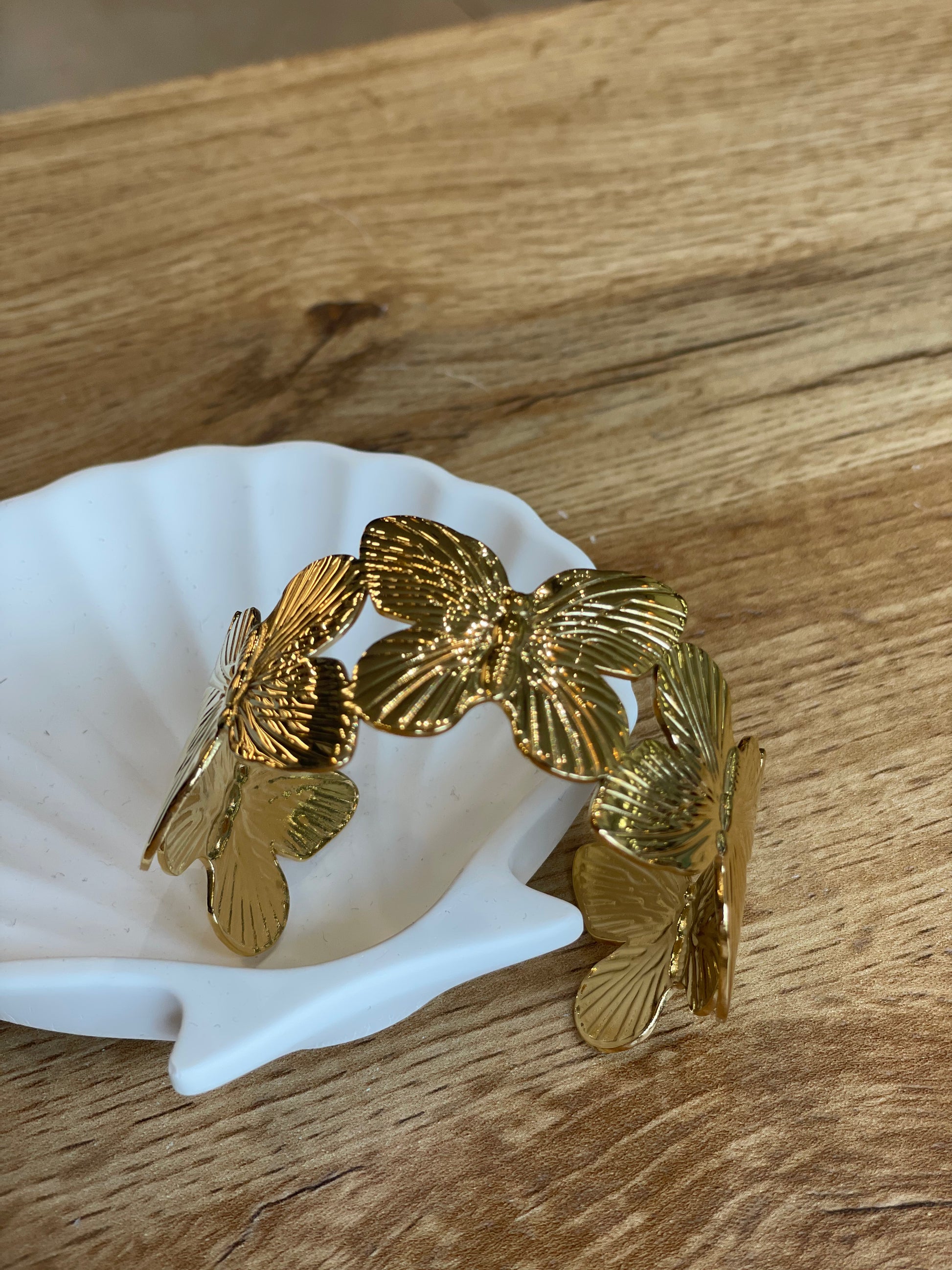 Elegantní náramek s motivem květin, vyrobený z kvalitní nerezové oceli ve zlaté barvě. Voděodolný a precizně zpracovaný šperk, který dodá vašemu vzhledu exkluzivitu. Jemné zpracování každého květu zaručuje jedinečný a působivý vzhled. Ideální pro každodenní nošení i pro zvláštní příležitosti – podtrhne váš styl a udělá váš outfit nezapomenutelným.