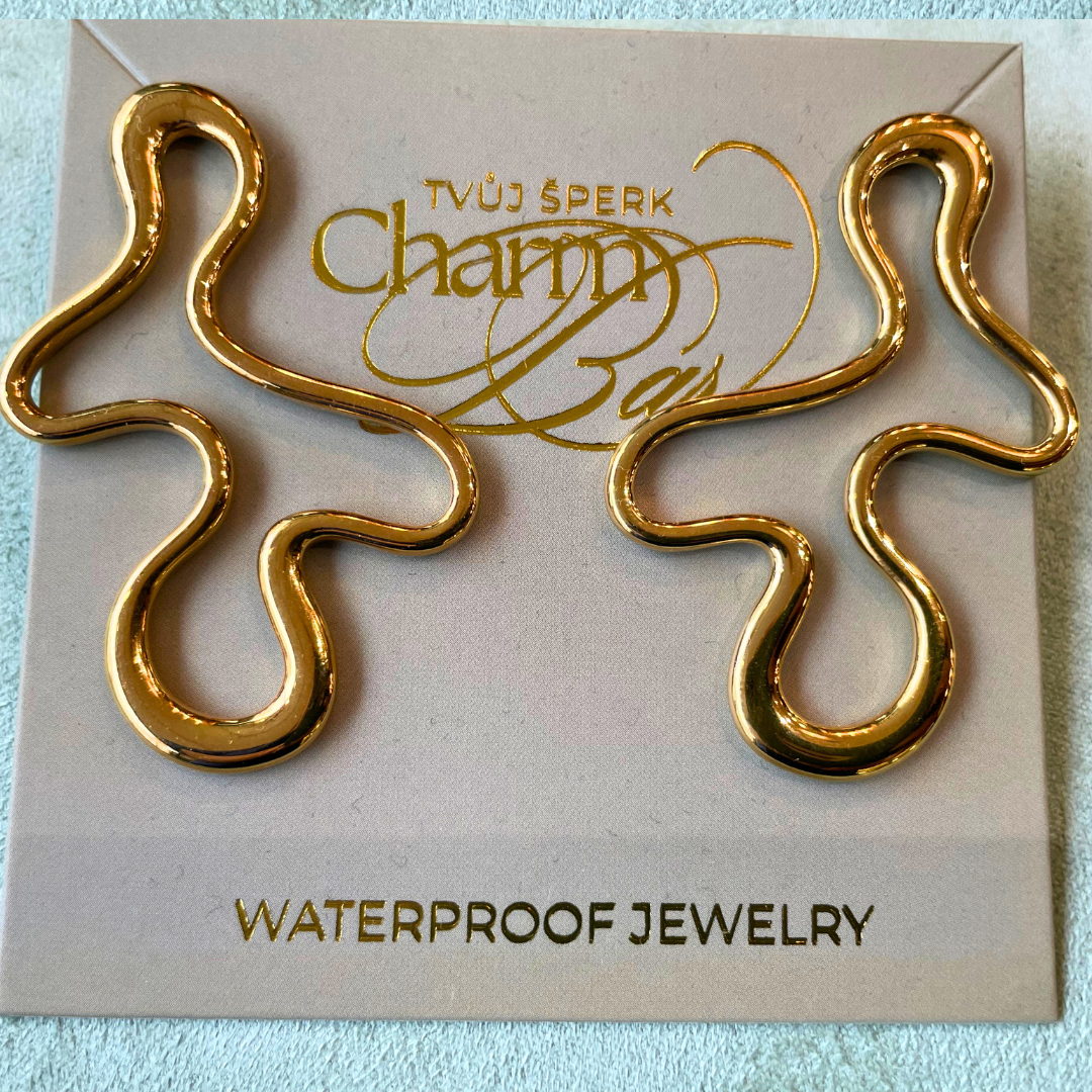 Moderní náušnice z nerezové oceli se zlatým povrchem, které zaujmou svým originálním, vlnitým tvarem. Jemně kopírují linii ucha a působí elegantně i neobvykle zároveň. Lehoučký a odolný šperk, ideální pro každodenní nošení i speciální příležitosti.